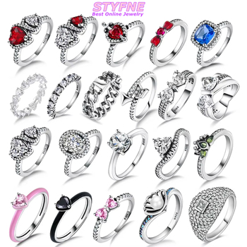 Anillo de Plata de Ley 925 para mujer, diseño de corona Original, romántico, oro rosa, cristal de circón, joyería de boda de compromiso de lujo principal